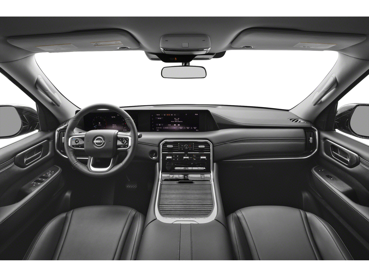 - Radio: NissanConnect w/SiriusXM 360L -inc: 6 speakers w/advanced audio features, 12.3" center touch-screen display, wireless Apple CarPlay and Android Auto, Bluetooth® hands-free phone system, Siri Eyes Free, hybrid radio, 5G capability, 2 USB type-C connection ports in front, Amazon Alexa w/Hotword, voice recognition and system controlled navigation w/traffic information