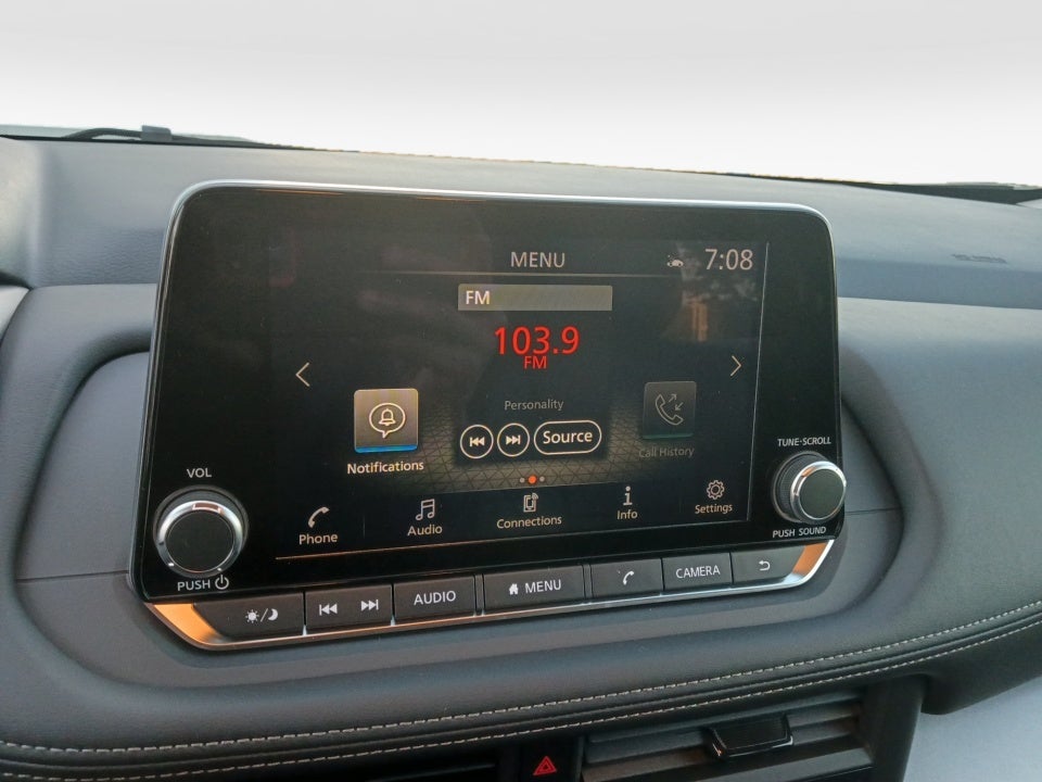 • Radio: AM/FM NissanConnect -inc: 6 speakers plus 2 tweeters, Apple CarPlay, Android Auto, 8" color touch screen display, Bluetooth®, 2 front USB type-C, Wi-Fi hotspot and NissanConnect Services powered by SiriusXM