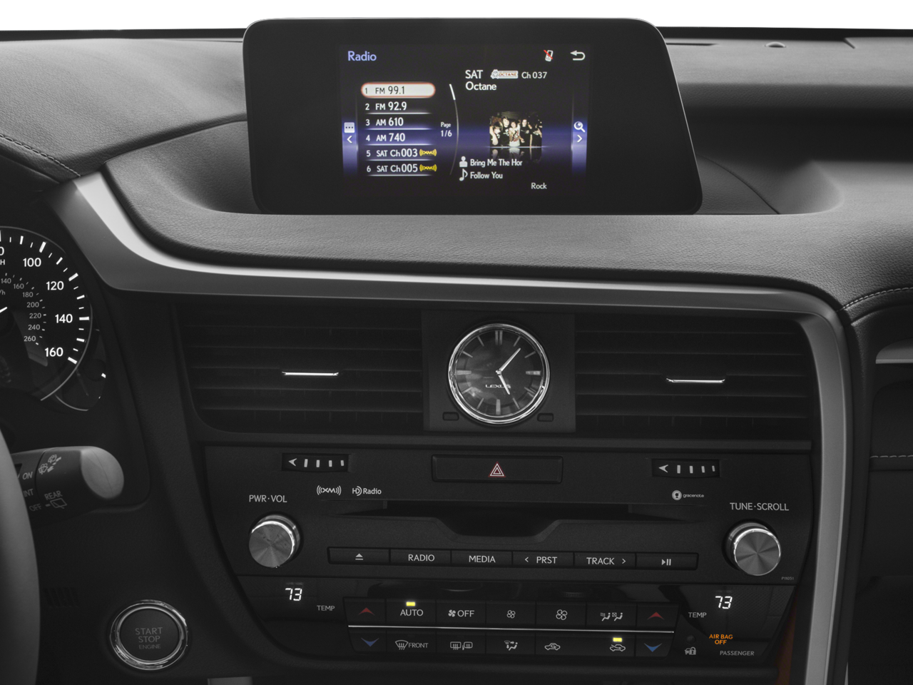 - Radio: AM/FM/CD Lexus Display Audio -inc: 8-inch screen, 9-speaker premium audio system, Bluetooth® hands free phone and automatic phonebook download capabilities, voice recognition, Cache Radio, ability to pause live AM/FM radio and HD Radio, traffic and weather data provided via HD Radio (free to all users while in HD Radio range), basic traffic map, weather forecast, Siri Eyes Free and Electro Multi Vision (EMV) display