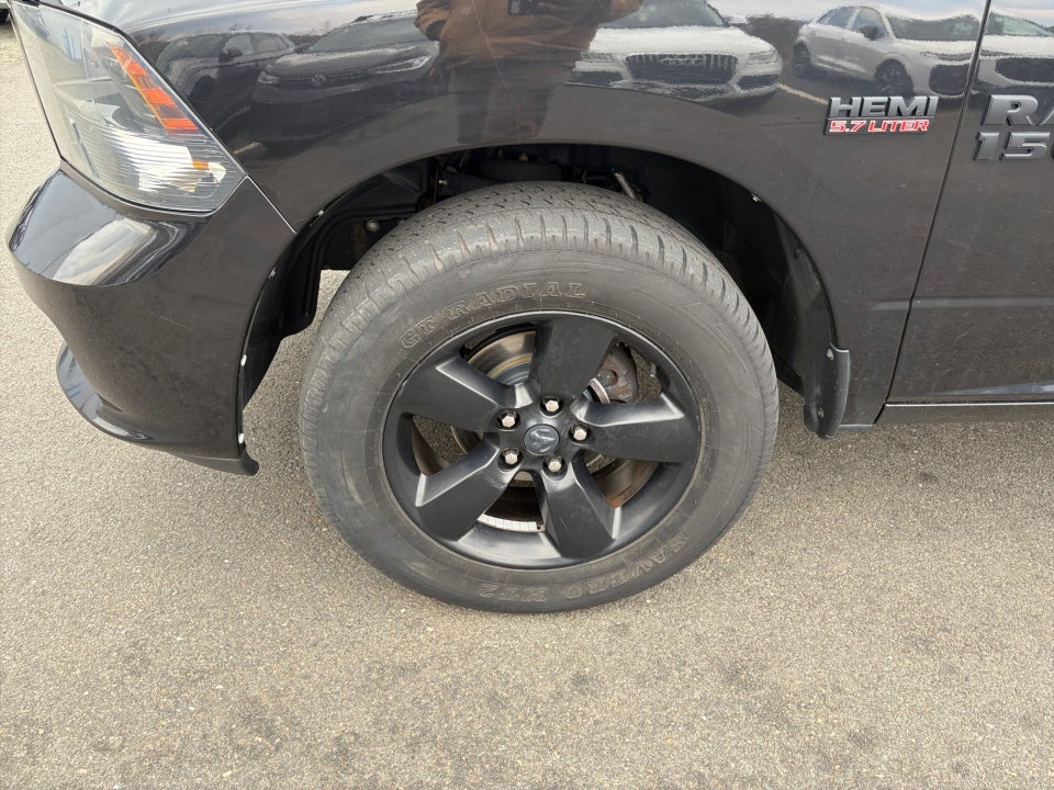 5.0" Touchscreen Display 6 Speakers Black Headlamp Bezels Black Painted Honeycomb Grille Black Ram 1500 Express Group Black Ram Head Tailgate Badge Charge Only Remote USB Port Cloth 40/20/40 Bench Seat Delete Hemi Badge Flat Black Ram 1500 Badge For More Info Call 800-643-2112 Front Armrest w/3 Cupholders GPS Antenna Input Integrated Voice Command w/Bluetooth® Media Hub (USB AUX) No Satellite Coverage w/AK/HI Overhead Console Popular Equipment Group Radio: Uconnect 5.0 Rear Folding Seat Rear View Mirror w/Microphone Remote Keyless Entry w/All-Secure Semi-Gloss Black Hub SIRIUSXM Satellite Radio Storage Tray Temperature & Compass Gauge Traction control Wheels: 20" x 8" Semi-Gloss Black Aluminum.