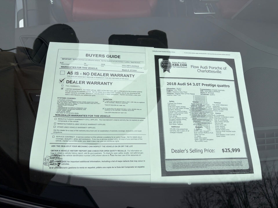 100 000 miles powertrain warranty and 2 years of oil changes included Audi Active Lane Assist Audi Adaptive Cruise Control Audi Connect PRIME & PLUS Online Services Audi Virtual Cockpit Carbon Atlas Inlays Driver Assistance Package Dual Pane Acoustic Front Side Windows Dynamic Steering Fine Nappa Leather Seat Trim Full Color Head-Up Display High-Beam Assistant Interior Lighting Plus Package Navigation Package Prestige Package Radio: Audi MMI Navigation Plus w/MMI Touch Red Brake Calipers S Sport Package Sport Adaptive Damping Suspension Sports Rear Differential Top View Camera System Traffic Sign Recognition. Clean CARFAX. Odometer is 17619 miles below market average! 21/30 City/Highway MPG