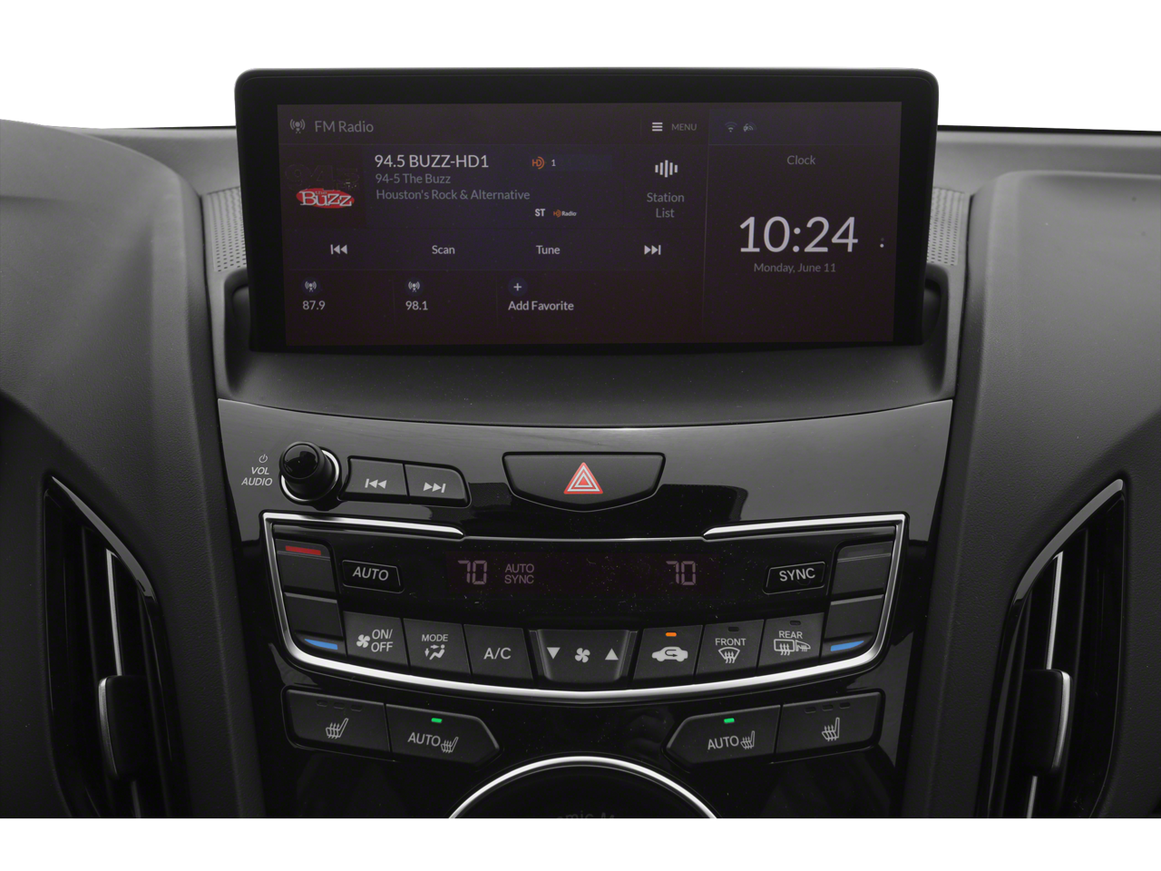 • Radio: Acura Premium Audio System -inc: 9 speakers, true touchpad interface, 10.2" HD dual-content center display, mobile hotspot capability, natural language voice recognition, Apple Carplay, Siri Eyes Free, SMS, MMS text message and email capability, Bluetooth® HandsFreeLink wireless telephone interface, SiriusXM satellite radio, USB audio interface, Bluetooth® streaming audio, MP3/auxiliary input jack, Speed-Sensitive Volume Compensation (SVC), 2 USB charge ports (2.5A charge front seat) and Maintenance Minder system