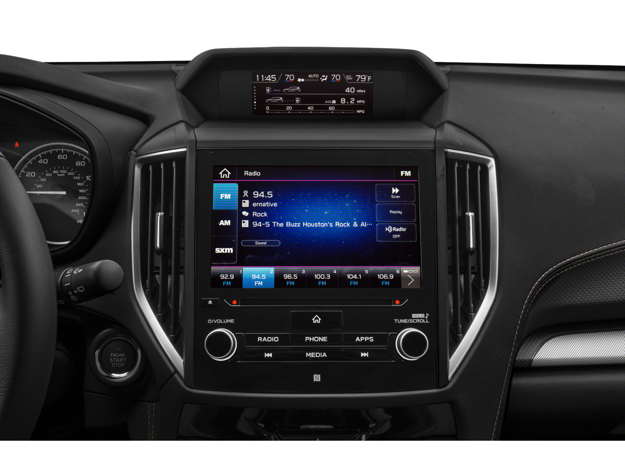 - Radio: Subaru Starlink 8.0" Multimedia Plus System -inc: AM/FM stereo HD Radio w/single-disc CD player w/MP3/WMA/CRR/RW file capability, multi-touch gesture high resolution display, 8.0" LCD screen, voice activated controls, Bluetooth® audio streaming connectivity and hands-free phone and SMS text messaging connectivity, Wi-Fi hotspot, Near Field Communication (NFC), iPod control capability, rear-vision camera display, SiriusXM All Access radio and Travel Link (subscription required), smartphone integration: AHA, Android Auto, CarPlay and Pandora, Starlink cloud applications: refer to subaru.com for app availability, dual USB port, 3.5mm auxiliary input jack, 6 speakers and body color roof mounted antenna