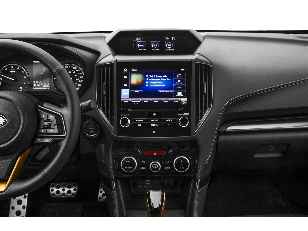 - Radio: Subaru Starlink 8.0" Multimedia Plus System -inc: AM/FM stereo HD Radio w/single-disc CD player w/MP3/WMA/CRR/RW file capability, multi-touch gesture high resolution display, voice activated controls, Bluetooth® audio streaming connectivity and hands-free phone connectivity, Bluetooth® hands-free SMS text messaging connectivity, Near Field Communication (NFC), iPod control capability, rear-vision camera display, SiriusXM All Access radio and Travel Link (4 months free trial/subscription required after), smartphone integration: AHA, Android Auto, CarPlay and Pandora, Starlink cloud applications: refer to subaru.com for app availability, steering wheel controls, 6 speakers, 3.5mm auxiliary input jack, dual USB input ports and body color roof mounted antenna