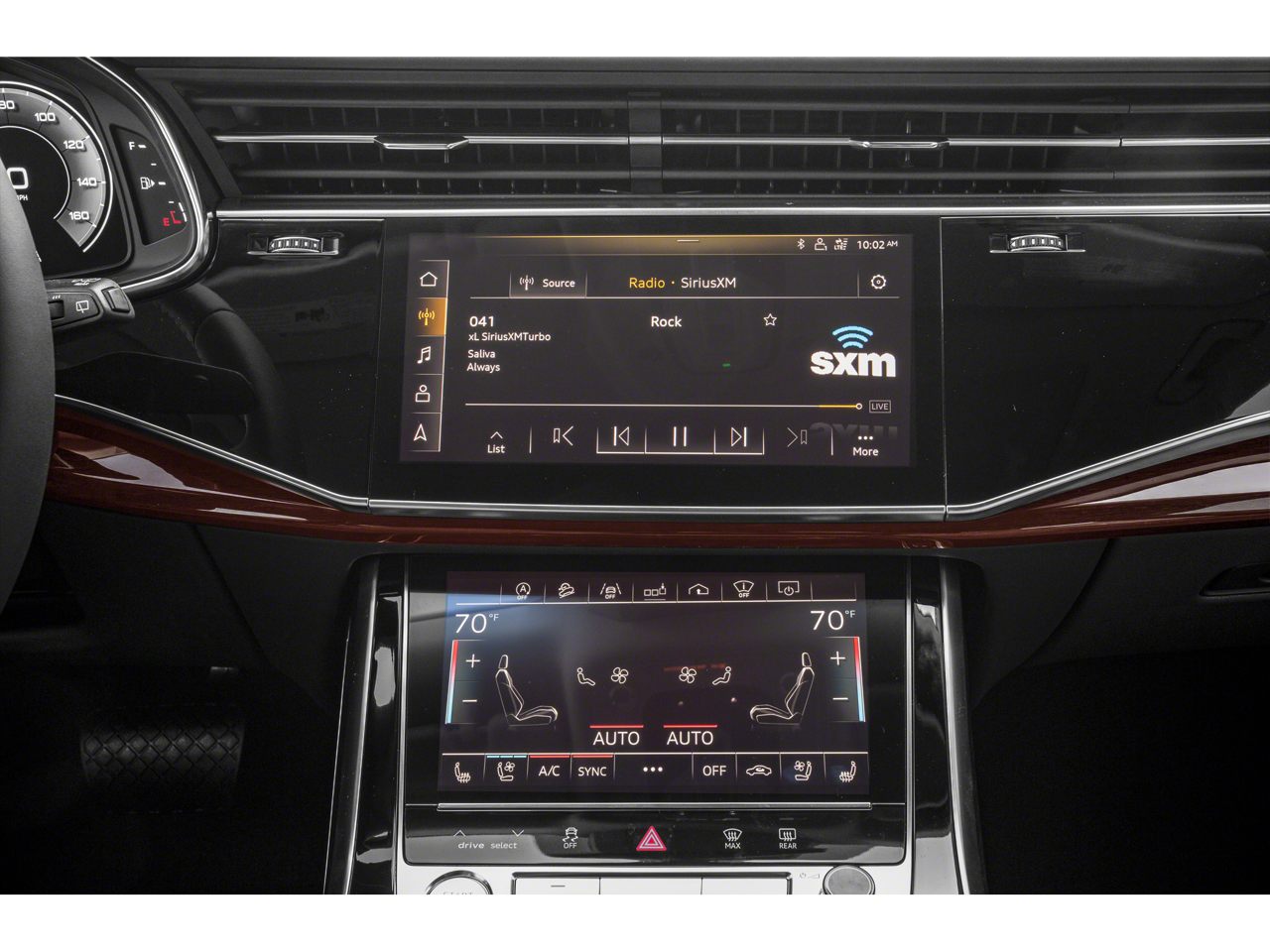 - Radio: Audi MMI Nav Plus w/MMI Touch Response -inc: 10.1" upper screen, Audi connect CARE (limited time subscription), Audi connect PLUS (6-month trial subscription, acceptance of terms required), Audi smartphone interface (wireless Android Auto and Apple CarPlay), Audi sound system, Bluetooth® w/audio streaming and SiriusXM w/360L (3 month trial subscription, acceptance of terms required)