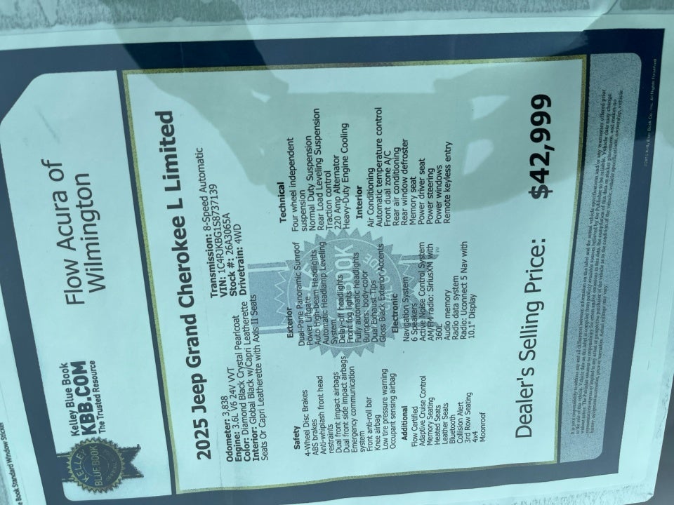 Flow Acura of Wilmington is pleased to offer this great-looking 2025 Jeep Grand Cherokee L Diamond Black Crystal Pearlcoat Limited with the following features: