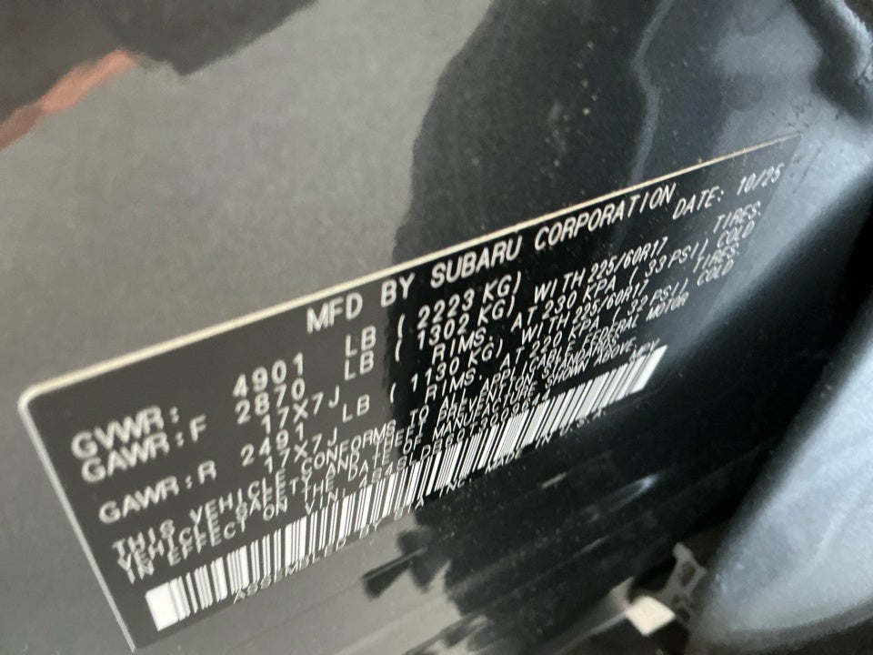 • Wheels: 17" x 7.0 J Dark Metallic Aluminum-Alloy -inc: machine finish and black wheel center cap w/Subaru 6 star logo